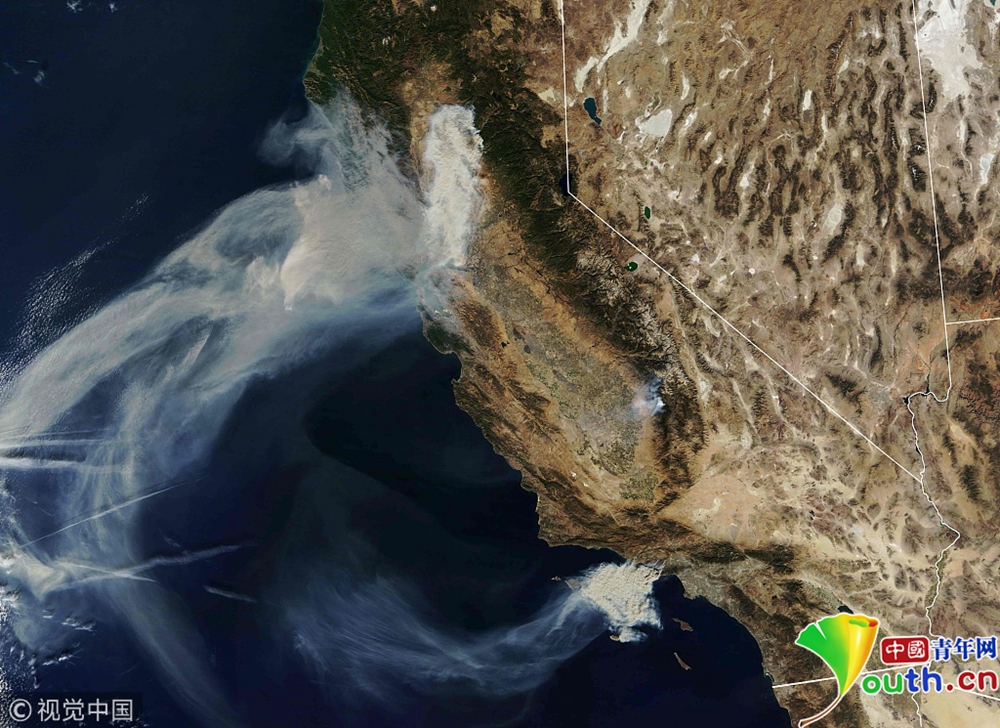NASA公布加州山火卫星照片 火势向海边蔓延