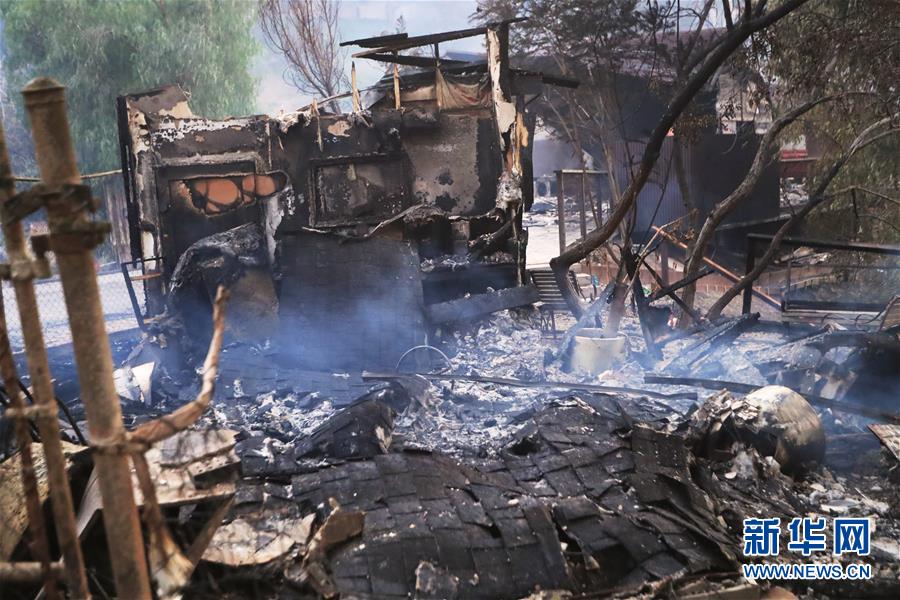 这是11月19日在美国加利福尼亚州比尤特县天堂镇拍摄的山火废墟。新华社记者吴晓凌摄