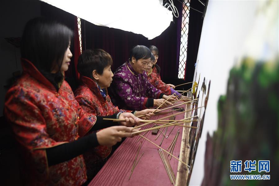 11月20日,在浙江海宁市南关厢历史街区,张坤荣(左三)在表演皮影戏。新华社记者黄宗治摄