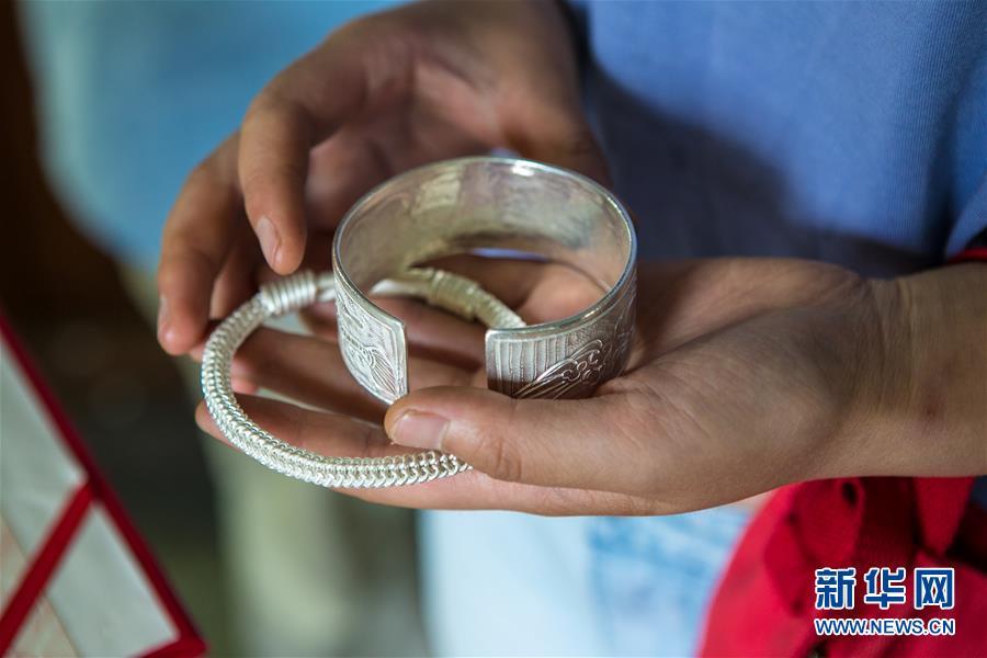 龙懂阳的弟弟龙太阳也是银饰工艺传人。和哥哥不同,弟弟主打的是银饰文化体验游,用自家传统苗寨开设民宿,游客在此居住的同时,还能学习体验银饰品制作。每年暑期一到,家长孩子络绎不绝。新客源、新销路、新模式带动雷山县银饰业不断发展壮大,成为脱贫攻坚的重要产业。2017年,雷山县控拜、麻料、乌高三个村银饰品及相关产业销售额超过1.5亿元,吸引很多外出打工的年轻人回家创业。苗寨锻银声在绿水青山间响遍千户,也渐渐走出大山,声名远播。新华社记者 李京 摄