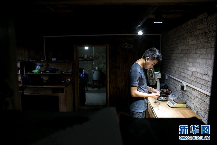 龙懂阳的弟弟龙太阳也是银饰工艺传人。和哥哥不同,弟弟主打的是银饰文化体验游,用自家传统苗寨开设民宿,游客在此居住的同时,还能学习体验银饰品制作。每年暑期一到,家长孩子络绎不绝。新客源、新销路、新模式带动雷山县银饰业不断发展壮大,成为脱贫攻坚的重要产业。2017年,雷山县控拜、麻料、乌高三个村银饰品及相关产业销售额超过1.5亿元,吸引很多外出打工的年轻人回家创业。苗寨锻银声在绿水青山间响遍千户,也渐渐走出大山,声名远播。新华社记者 李京 摄