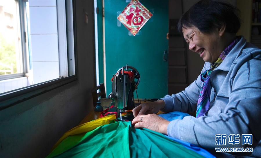 11月13日,邹勤敏在家中利用旧雨伞制作理发用的围布。