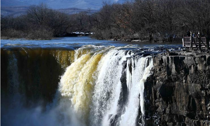 镜泊湖飞瀑“逆”冬展奇观