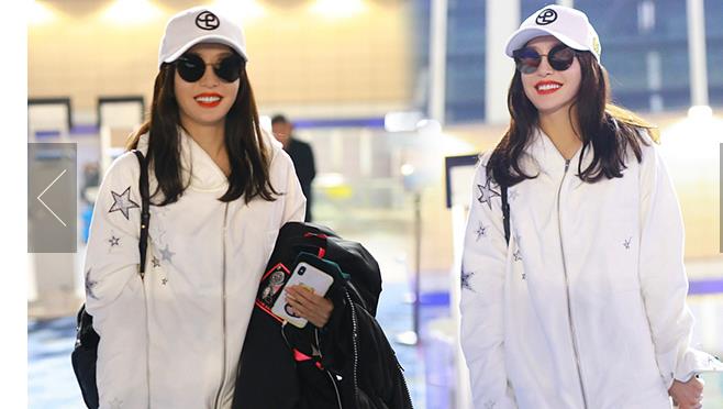 秦岚穿星星外套活力四射 架黑超涂红 ...