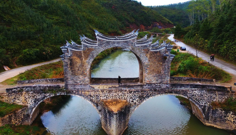 航拍江西赣州明代太平桥 两孔三墩造 ...