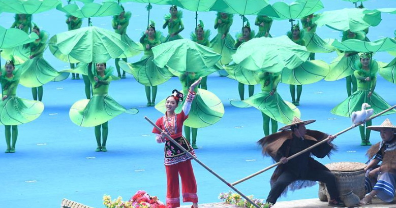 演员在敦煌飞天剧院表演舞剧《丝路花雨》(11月28日摄)。 敦煌记录历史。开放的胸襟,曾让这里成为古代丝绸之路上“华戎所交一都会”。 时隔千年,改革开放的春风吹入西北内陆小城,敦煌再度成为中国对外开放的文化前沿。 新华社记者 陈斌 摄