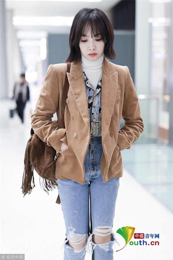 2018年12月16日,宋茜从上海机场飞往北京机场。她身穿短款薄外套,搭配破洞牛仔裤,要风度不要温度,一路低头前行闷闷不乐似遇愁心事,到了北京之后她又裹起了厚围巾,但依旧闷闷不乐。