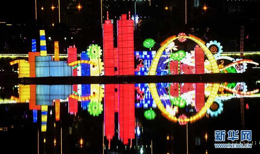 荔浦河中的花灯(12月17日摄)。 新华社记者张爱林摄