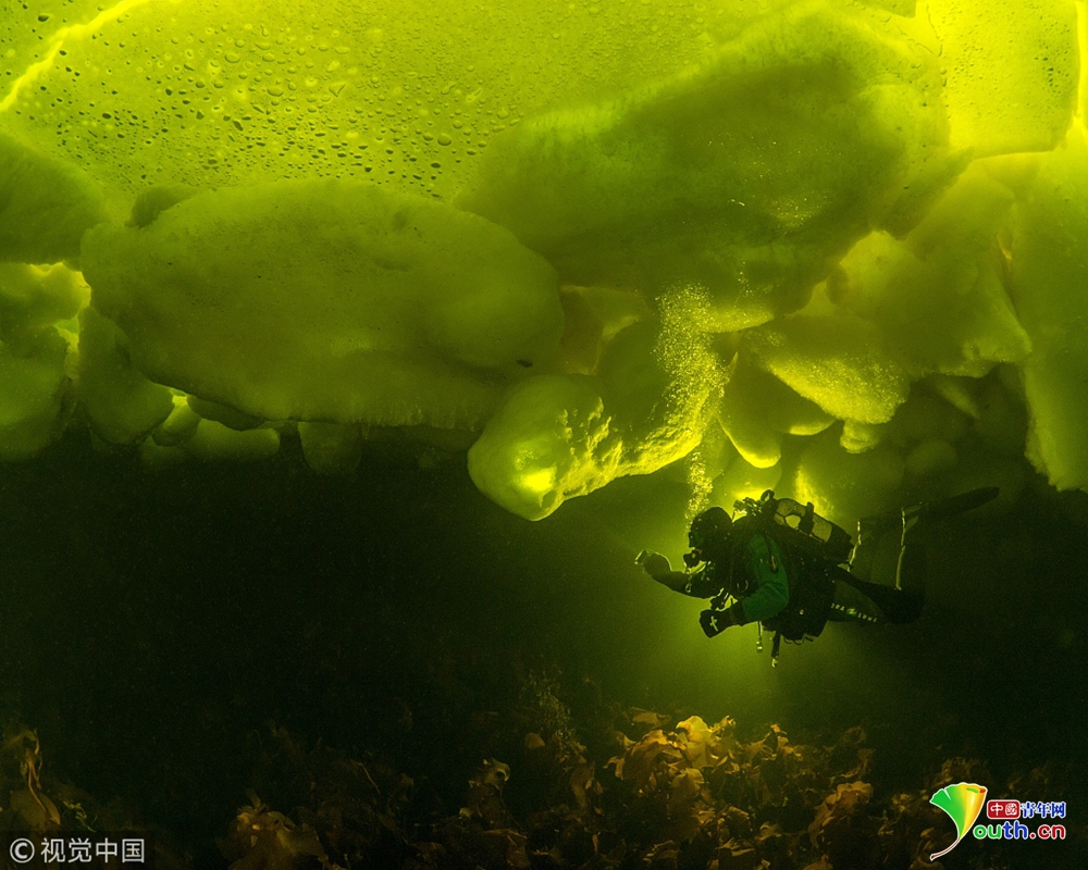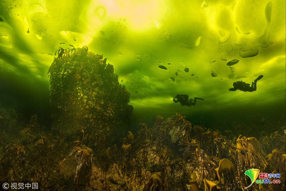 这是唯一在冬季结冰的欧洲海,勇敢的冰潜员潜入冰冷的水中,探索超现实的冰下世界。图片来源:视觉中国