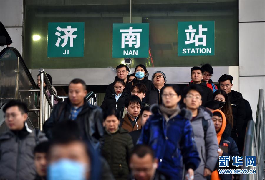 1月5日,旅客在济南站等候上车。 自1月5日零时起,全国铁路实施新的列车运行图。 新华社记者王凯摄