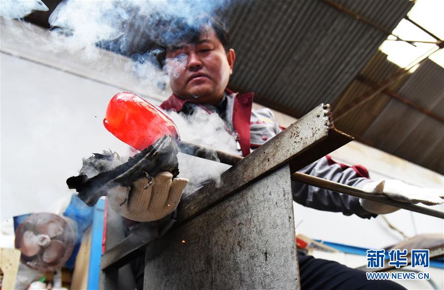 1月12日,孙云毅在制作鸡油黄琉璃艺术品。 新华社记者王凯摄