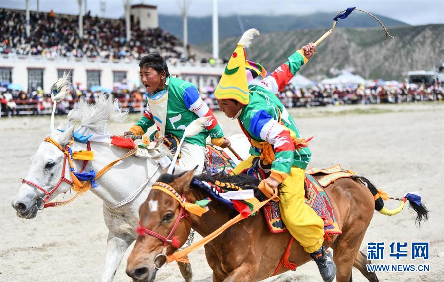 8月10日,骑手驰骋在当雄县赛马场。新华社记者晋美多吉摄。