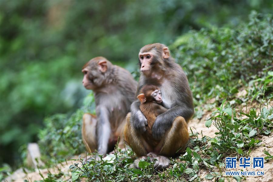这是8月11日拍摄的温塘河岸边的野生猕猴。近年来,位于重庆市渝北区统景镇的温塘河两岸植被不断优化,生态环境持续改善,吸引越来越多的野生猕猴聚集于此。新华社记者王全超摄
