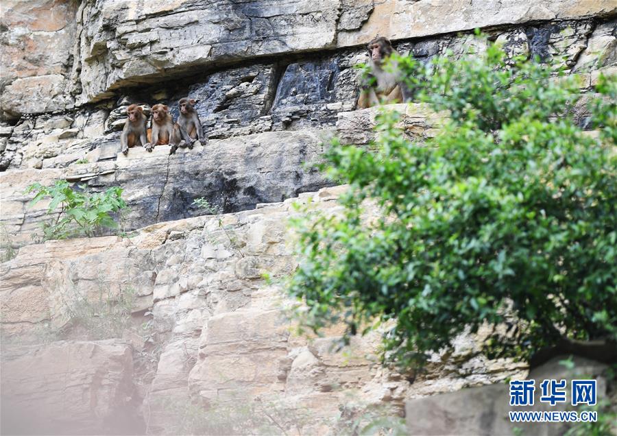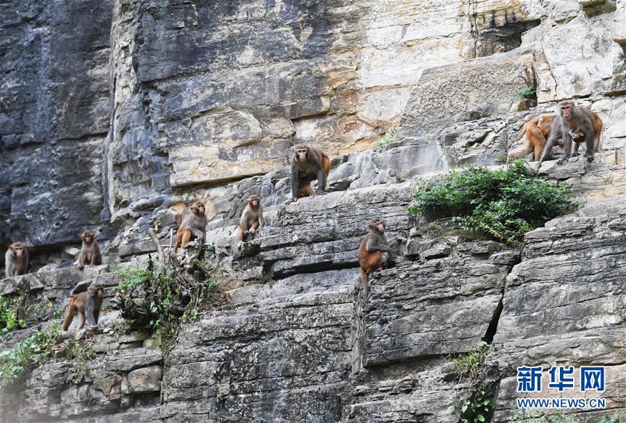 这是8月11日拍摄的温塘河岸边的野生猕猴。近年来,位于重庆市北区统景镇的温塘河两岸植被不断优化,生态环境持续改善,吸引越来越多的野生猕猴聚集于此。新华社记者王全超摄