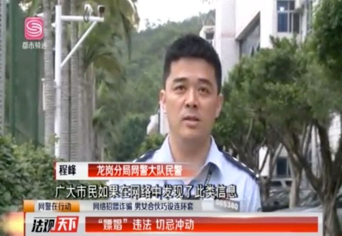 龙岗警方立即成立专案组展开侦查,结果发现这是一个网络招嫖诈骗团伙,在各个社交平台发布虚假招嫖信息,然后引诱事主与之联系进而实施诈骗。