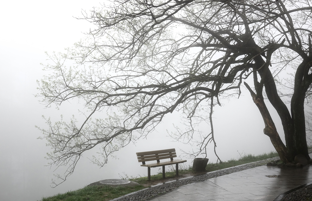 瀑布云在山顶形成,平铺开来,顺着山崖缓缓流下,延绵不绝。李仁奇 摄