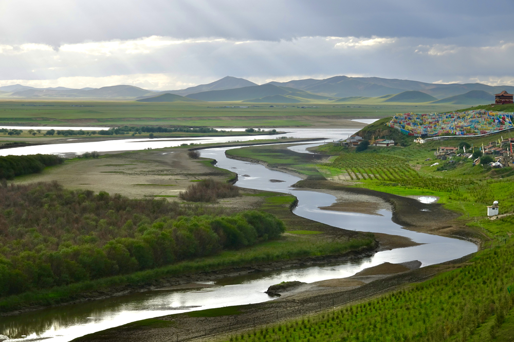 蜿蜒曲折的黄河及其支流白河将宽广平坦的若尔盖草原核心地带分割成无数河州、小岛,形成辽阔的高原湿地、候鸟天堂,被中外科学家誉为“宇宙中的庄严幻影”。李仁奇 摄