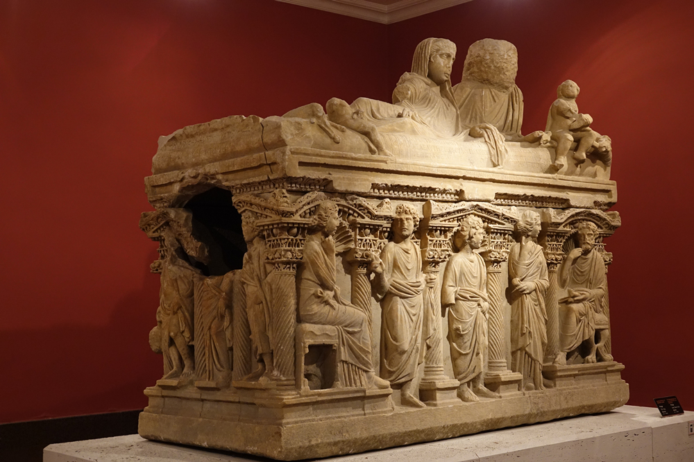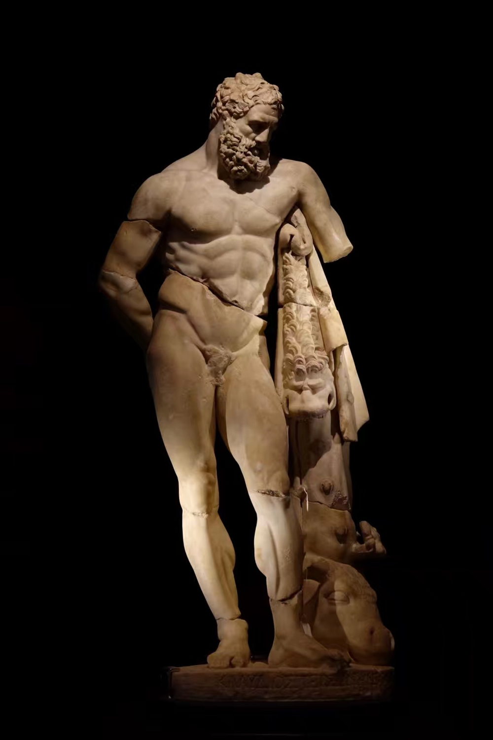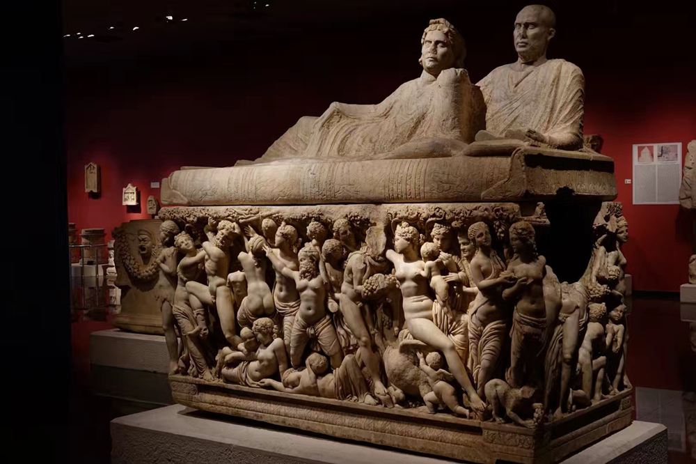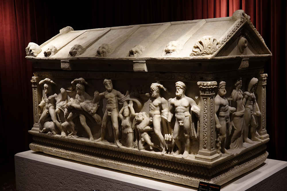 赫拉克勒斯石棺,它的侧立面描绘赫拉克勒斯斩杀九头蛇、与狮子搏斗、偷盗金苹果等12项苦力后升为神的传奇故事,浮雕保存完整、栩栩如生,展现了古罗马精湛的雕塑工艺。李仁奇 摄