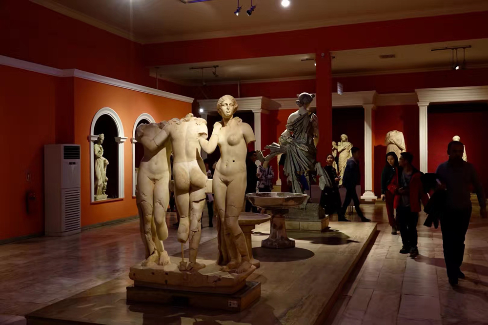 大量公元2—3世纪的人体雕塑令人目不暇接,这个时期也是该地区历史发展中最为繁盛的阶段。馆内陈列着众多古希腊古罗马众神的雕像,号称“万神殿”。这些雕像是从公元8世纪的古墓里面发掘出来的,包括众神之神宙斯、天后赫拉、智慧女神雅典娜、爱情与美丽女神阿芙罗狄忒、太阳神阿波罗、大力神赫拉克勒斯等。李仁奇 摄