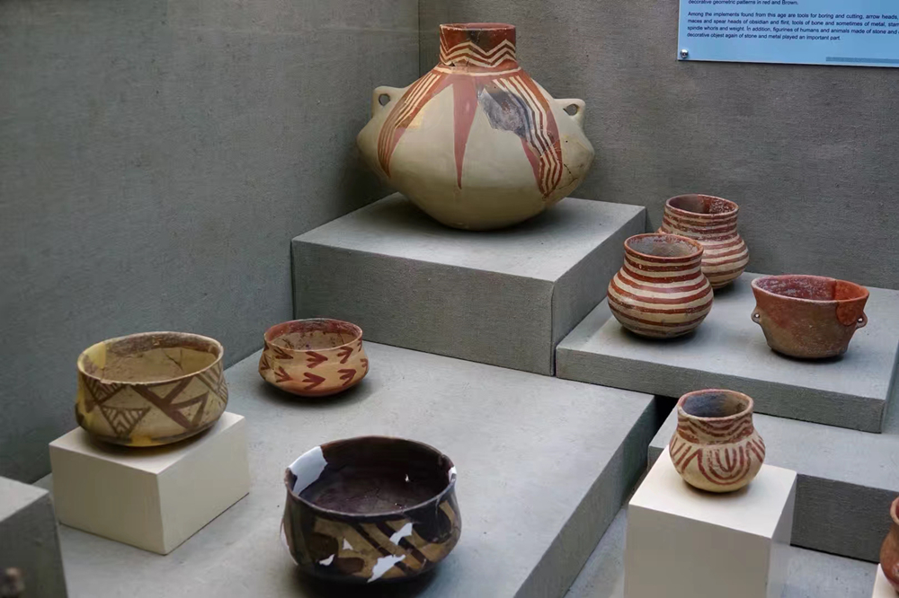 这些是公元前的陶器,从最初的陶轮到形状各异、纹饰风格不同的陶瓶。李仁奇 摄