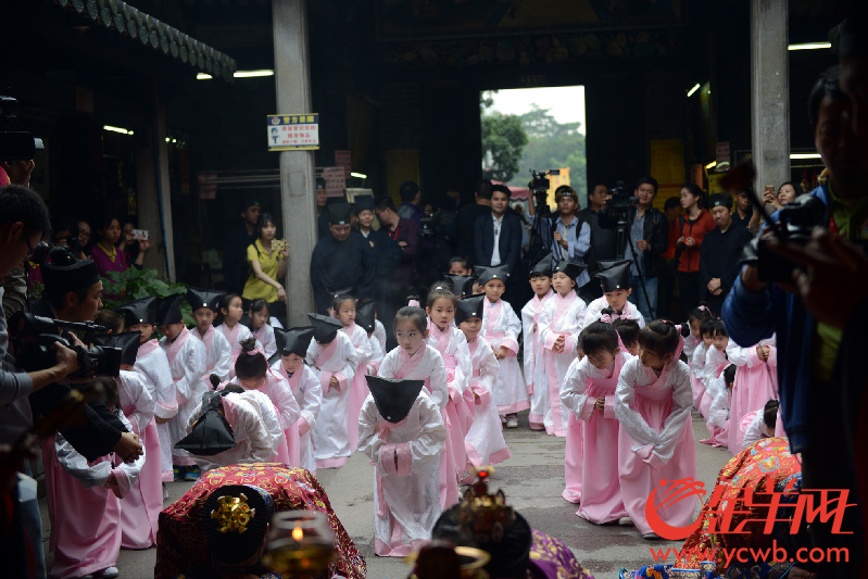 当天,在仁威庙、文塔广场,荔枝湾文塔进行开笔典礼活动,通过“端正衣冠、朱砂启智、共写人字、转文塔”等系列仪式完整重现开笔礼的全套仪式及精神内涵,向年轻人传播团结互助、尊老爱幼,传承中华民族传统礼仪文化。