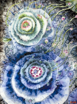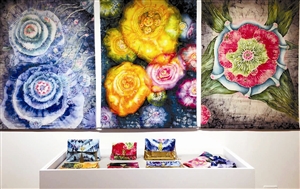 此次展览作品分为两大部分,一部分是学院教师从各自的专业视角挖掘传统文化及传统手工艺的精髓,并结合市场需求进行的产品创意设计;另一部分则是学院教师近年来创作的优秀手工艺作品,部分作品获得各类艺术设计大奖,如周汉新的“柴烧茶器”,采用自制柴窑免釉烧成,材料取自高岭土;刘君、蒋涛的纺织设计作品“象外之蓝”,作品材质来自扎染、蓝染棉和蓝印花布;郝雅莉的蜡染绘画“花漾年”系列,作品材质即是蜡染和扎染。
