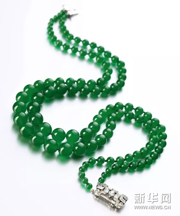 Woolworth-Yard 天然翡翠珠配钻石项链