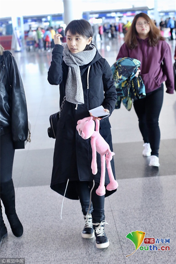 王子文素颜现身羞涩挠头 手提“粉红豹”童心未泯