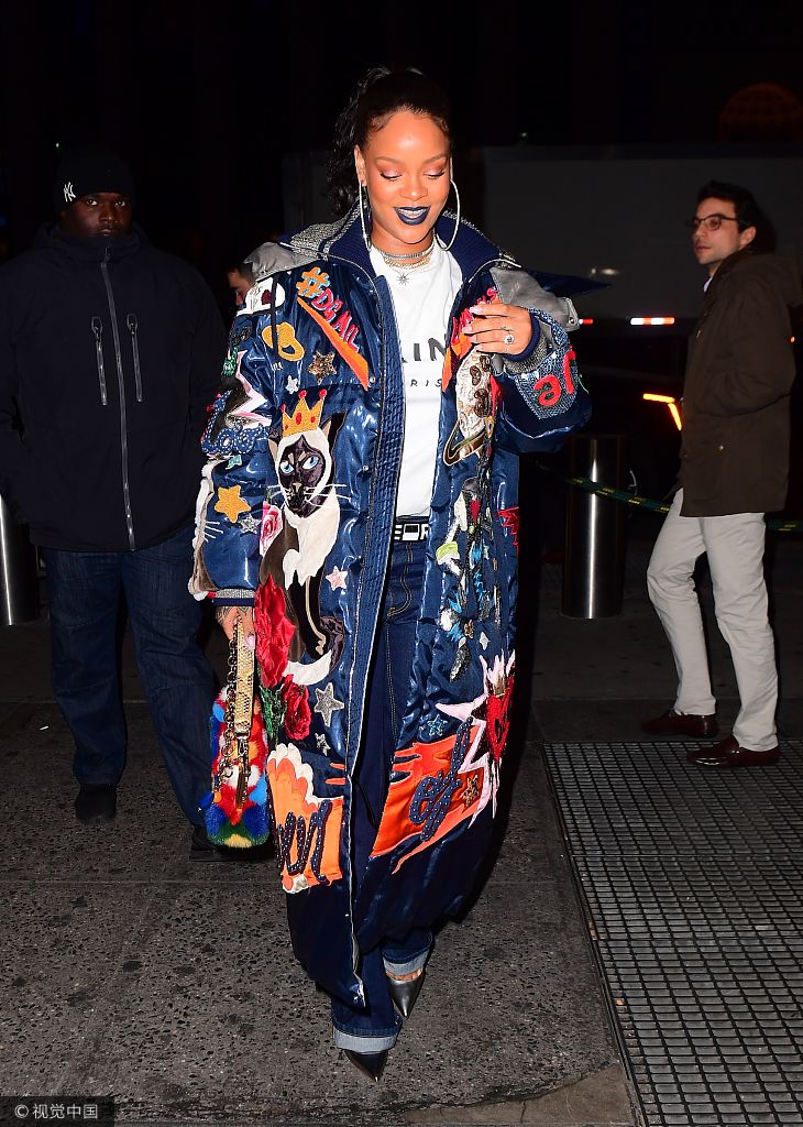 蕾哈娜印花羽绒服色彩斑斓 蓝唇狂野