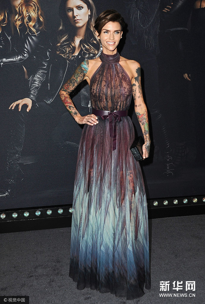 鲁比·洛斯渐变深紫色削肩长裙 尽显熟女气质