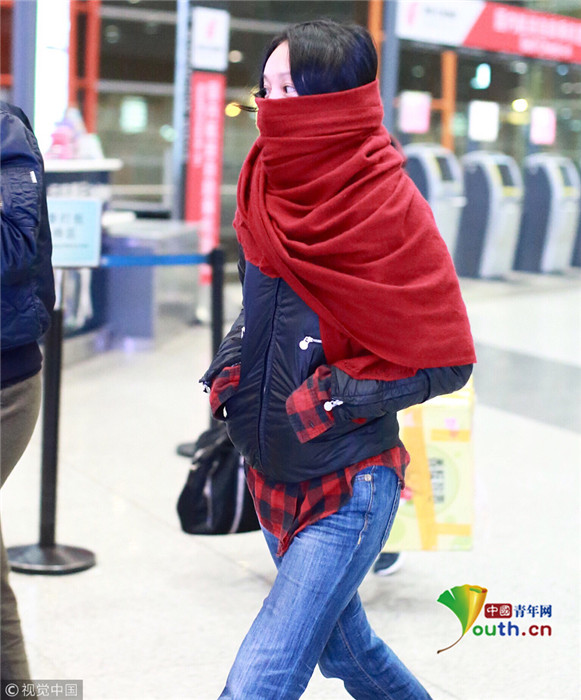 周迅演绎红色围巾的另类戴法 大步流星气场满分