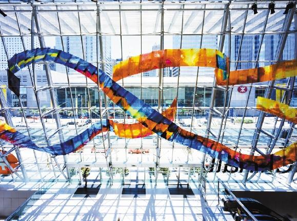 ▲盛姗姗在香港国际金融中心二期(IFC)的作品《舞动的丝带》。 (受访者供图)