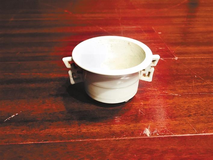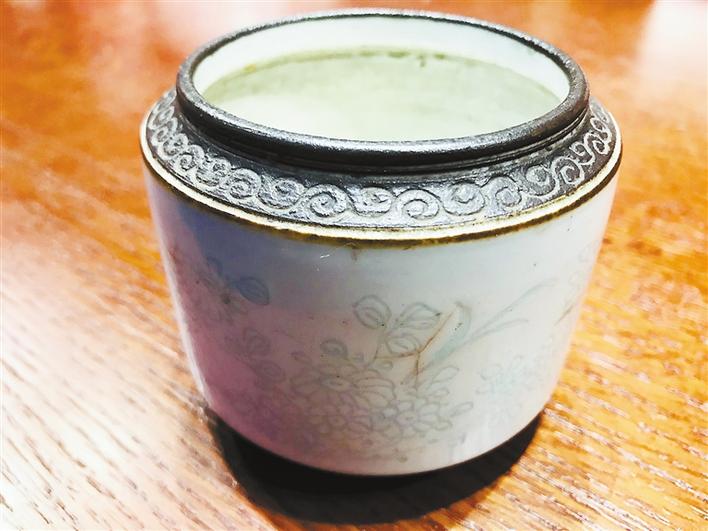 ▲藏友带来的“清德化甜白釉香炉”(上)和“清末民初铁箍泥刻花卉纹笔洗”。 (吴冠甫 摄)