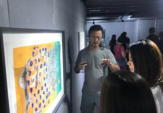 开幕式结束后,智美艺术特邀嘉宾—著名作家、艺术家,唐寅九先生与陈澈、姜培源两位艺术家围绕此次展览主题和当代青年艺术家的创作心态以及创作历程等诸多话题进行了深入的对谈。