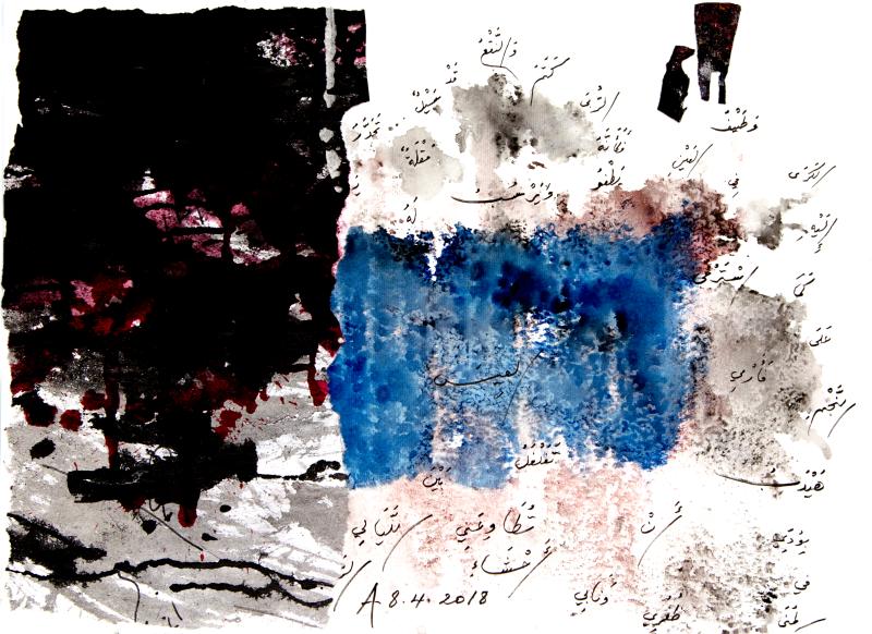 他的这种艺术实践也可追溯至维克多·雨果(Victor Hugo)的绘画,或进一步,追溯至对其产生重大影响的超现实主义者那 —— 众所周知,他们通过诗歌打开人类的感性,就像苏菲主义,让人沉浸在充满诗意、超越一切的忘我境界。一切既相关,又都未完成。阿多尼斯的每件拼贴-绘画-手稿,都是诗人向我们发出的一个小小宣言,呼吁一种更开放、更含蓄、更微妙、更深刻、更感官、更有思想、更个性化、更政治化、更即时、更能持久的诗歌艺术。