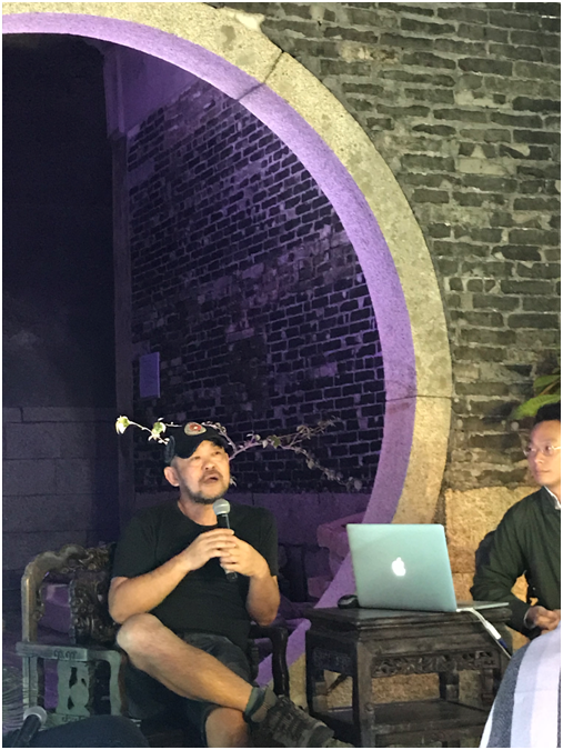 本次讲座活动是由艺术家、策展人杨勇主持,两位特邀嘉宾分别是中山大学传播与设计学院的教授冯原(同时担任2011年深圳香港/城市双城双年展学术委员会)以及现任Collect总监伍常(曾为佳士得拍卖行美术学院亚洲课程主管)。在粤港澳大湾区的城市群背景下,主持人从大鹏所城的历史及赖氏家族影响遗留下的民俗,讲座嘉宾则分别从各自所处的城市—香港、广州为着眼点展开学术讨论。