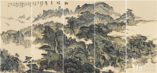 《松风泉声》 山水五联屏 69×160cm×5 2018年