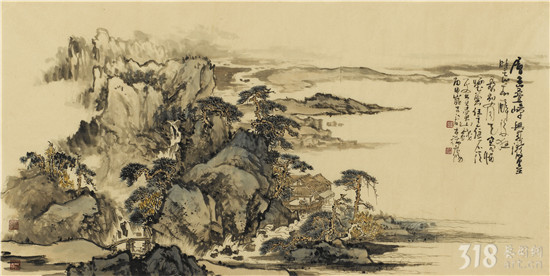 秉承传统文脉,范阳先生的山水画拟古而不泥古,他追崇宋元绘画,以“真诚、壮美、磅礴”的山水实践和艺术特色诠释了山水精神。他擅长全景式山水,作品均出自腹稿,胸中无丘壑者恐难达此境;他笔墨精熟自如,一树一石,出于经典,又独具风骨;他为我们呈现了一派山高水长、隐逸逍遥,有峰峦嵯峨、溪涧蜿蜒、松柏掩映、飞瀑流泉;有策杖而行、独坐松下、傍水结庐、寻隐问道……这些山居主题,既源自于他的生活体验,也来自于他对古人山水画图式的不断玩味、整合,从而构筑了他理想的山水图景。在他的山水中,我们可远观,可近探,可栖息,可壮怀,那位山水中反复出现的“人”,亦古亦今,或隐居或放志,是画家本人,或是你是他,行其所行,得其所得,乐其所乐,自由放达于一纸山水中,感受天地悠远,生命渺小,物我两忘。