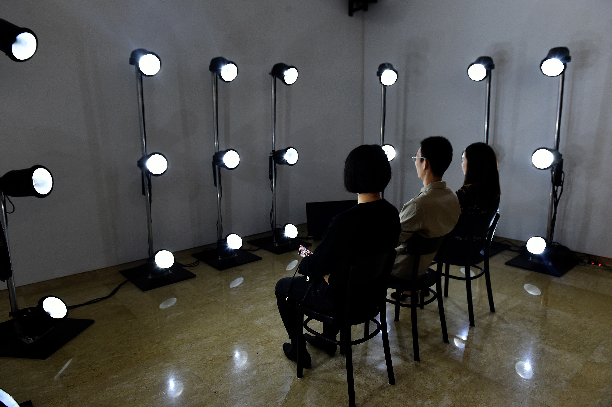 很多观众排队体验丹麦馆的《断电》,它由27根频闪观测器灯围着三张座椅。观众坐下,闭上眼睛……通过预设好的灯光顺序,闭上眼睛眼前将会呈现几乎会引起幻觉的灯光图案。同音乐一起,制造了一场浸入式的感官体验。通过调动眼球与大脑的敏感性,看它们如何产生视觉“断电”。