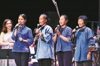 伴随女书歌声,在竖琴演奏家米拉·法尔卡什的弹奏和深圳交响乐团的共同演奏下,《女书》用音乐与画面表现出来,带给观众非一般的音乐体验。最为惊喜的是,现场还邀请到4位女书传承人上台,为观众清唱了一段原汁原味的女书歌。