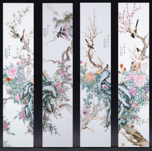 刘嘉鸿将中国没骨花鸟画与陶瓷绘画有机结合,让新彩与粉彩在色彩上相互碰撞,将国画的气韵与格调融入瓷画创作中强调内在意蕴,中国没骨画的精妙笔墨在陶瓷艺术载体上得到淋漓尽致的发挥,这种创新,在某种意义上对景德镇陶瓷艺术的发展,有着独特的探索价值和启迪作用。