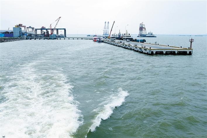五月的珠江口风大浪急,位于宽阔水面的深中通道中山一侧建设工地,一派热火朝天的建设景象,各种大型施工机械交错排开,建设辅桥如长龙般在水上蜿蜒伸展。来自深圳中山两地的文艺家们,首先来到建设工程指挥部,在工程示意图前听取工程建设情况的介绍。随后与工程建设者们进行了访谈和交流。两地文化界分别向工程建设者们赠送了书籍和书画作品。