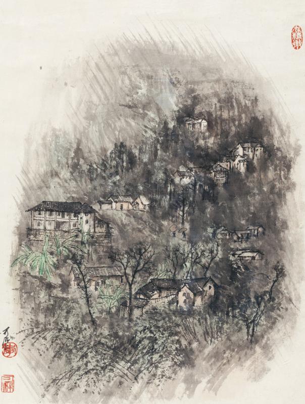作者:李可染 作品名称:山村烟雨图