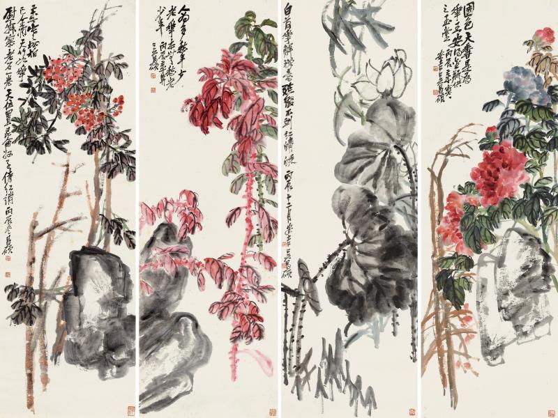 作者:吴昌硕 作品名称:花卉四屏