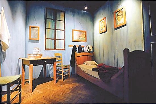 在这里,实景卧室还原厅,还原梵高1888年在法国阿尔勒的这间对于他有着特殊意义的温馨小屋,观众置身其中,可以体味其鲜明的色彩、非凡的透视效果,展开对“阿尔勒的卧室”的无限幻想。沉浸式主厅充分利用“声光”技术,将逾百幅梵高名作还原成3D场景,真实再现梵高强大又富有张力的笔触手法。