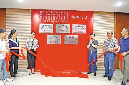 宝安日报2019年07月02日讯(记者 张浩 通讯员 罗宇文 实习生 陈品翰 文/图)近日,石岩街道文学艺术界联合会、区戏剧家协会石岩分会、区影视家协会石岩分会、区摄影家协会石岩分会、区杂技家协会石岩分会、区文艺志愿者协会石岩分会揭牌仪式在石岩街道举行。各协会成立后将进一步挖掘、利用石岩的文化资源,推动文化事业蓬勃发展。区文联、石岩街道等单位领导出席了揭牌仪式。