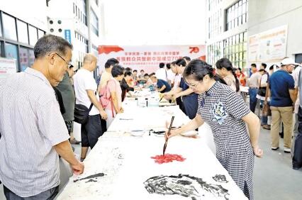 宝安日报2019年9月19日讯 9月18日下午,以“中华民族一家亲,同心共筑中国梦——各族群众共贺新中国成立70周年”为主题的书画艺术笔会在龙华文化艺术中心举行,80多位书画名家现场挥毫,尽展中华民族文化艺术瑰宝魅力。