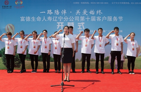 2016年7月3日,富德生命人寿第十届客服节开幕式在辽宁省沈阳市中山公园隆重举行。分公司总经理助理曹营女士、相关部门经理、内外勤员工、媒体、客户代表,以及参加绘画大赛的孩子、家长等100多人参加了开幕仪式。