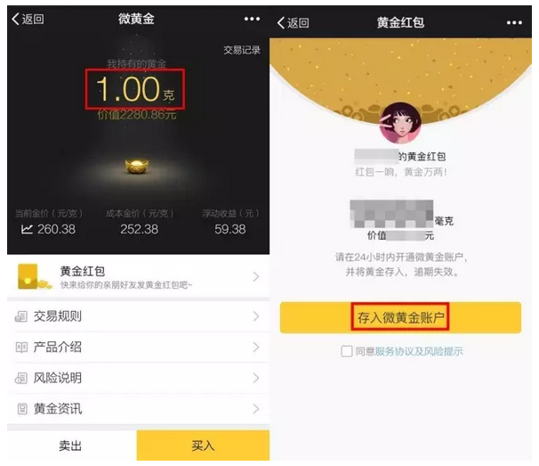 近日,财付通与工商银行联合推出了【腾讯微黄金】(下称“微黄金”)这一在线黄金交易创新产品。“黄金红包”是在该平台基础上提供的服务。用户可以将本人持有的黄金份额以红包的形式转让给亲友,形式表现为“黄金红包”。