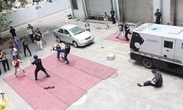 别担心,这不是突发新闻,而是威豹押运5月17日在福田营业部一楼大院进行的反抢演练。经过高度训练的威豹押运员迅速制服歹徒,成功完成押运任务。据介绍,威豹押运为押运途中可能面对的问题都准备了预案,所有押运车辆都安装了车载网络视频系统,能够实现车辆GPS定位和全程可视化监控。